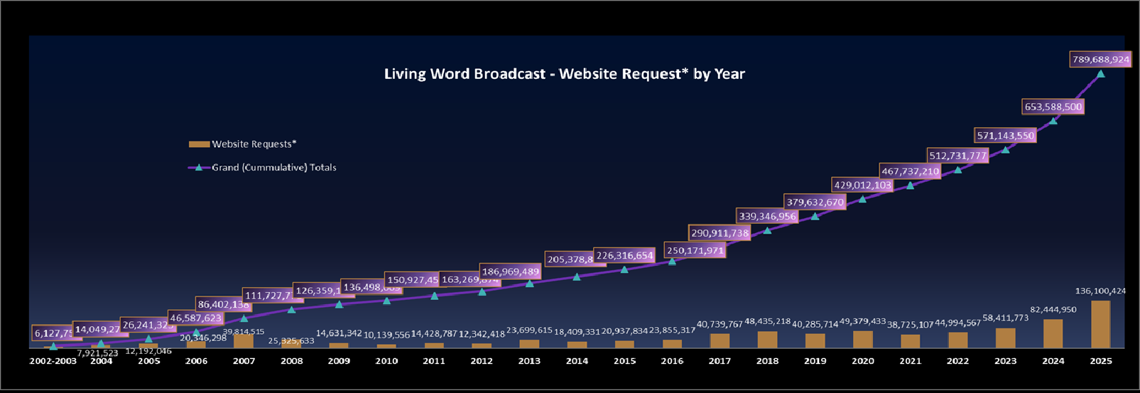 Living Word Broadcast March 17th, 2002 - December 31st, 2025 Highlights of projects and results: